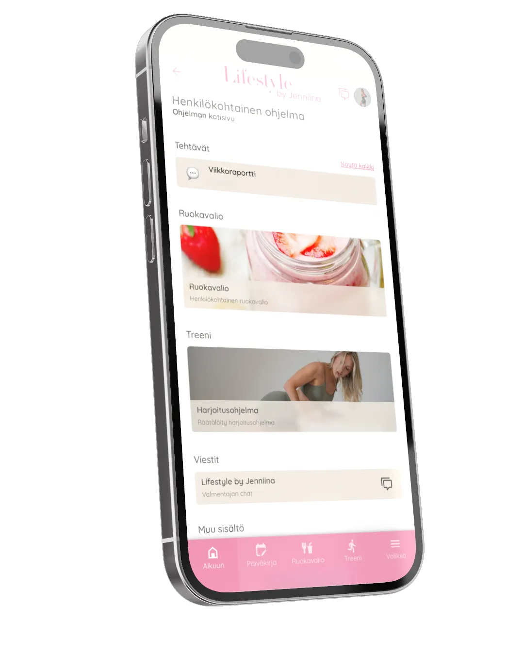 ”Mä oon Jenniina, elämäntapamuutosvalmentaja ja ennen kaikkea ihminen, joka on elänyt läpi itse sen, mistä valmennan. Olen auttanut naisia jo vuodesta 2020 onnistumaan painonpudotuksessa ja elämäntapamuutoksessa. Oon ollut se tyyppi, joka on miettinyt että miksei mikään tunnu toimivan ja oppinut kantapään kautta, että hyvinvointi ei synny kontrollista, vaan tasapainosta.